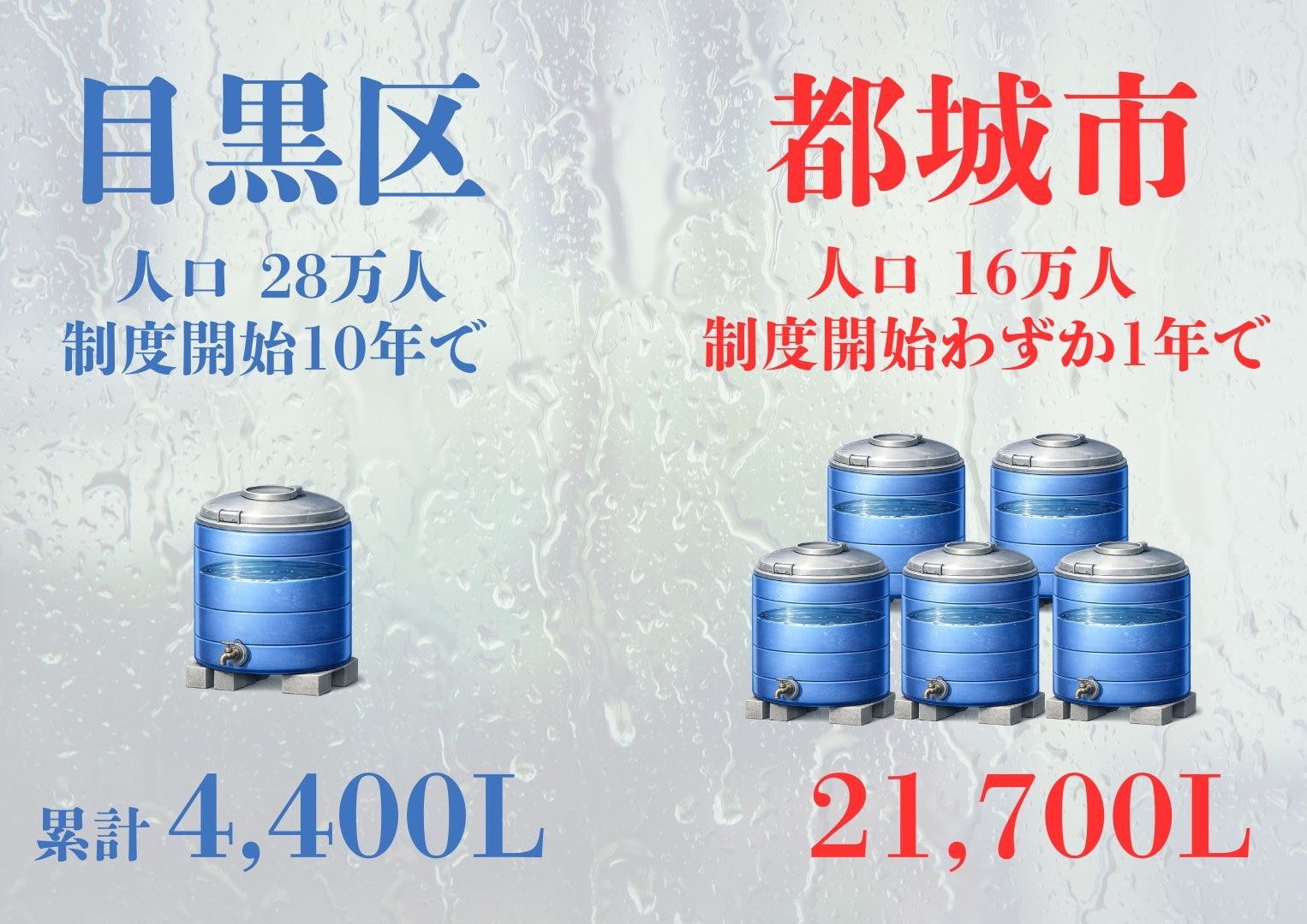 目黒区の10分の1の期間で目黒区の5倍、タンクを整備した都城市