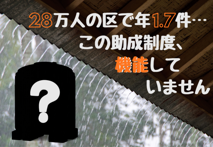制度の趣旨や所管云々は脇に置いて、「水道代の節約になる」とか、「断水時も雑用水に使えて安心」などといった、取り付けるその人にとってのメリットこそをPRする必要があります。このことについても改善を求めました。区長の答弁(要約)は、