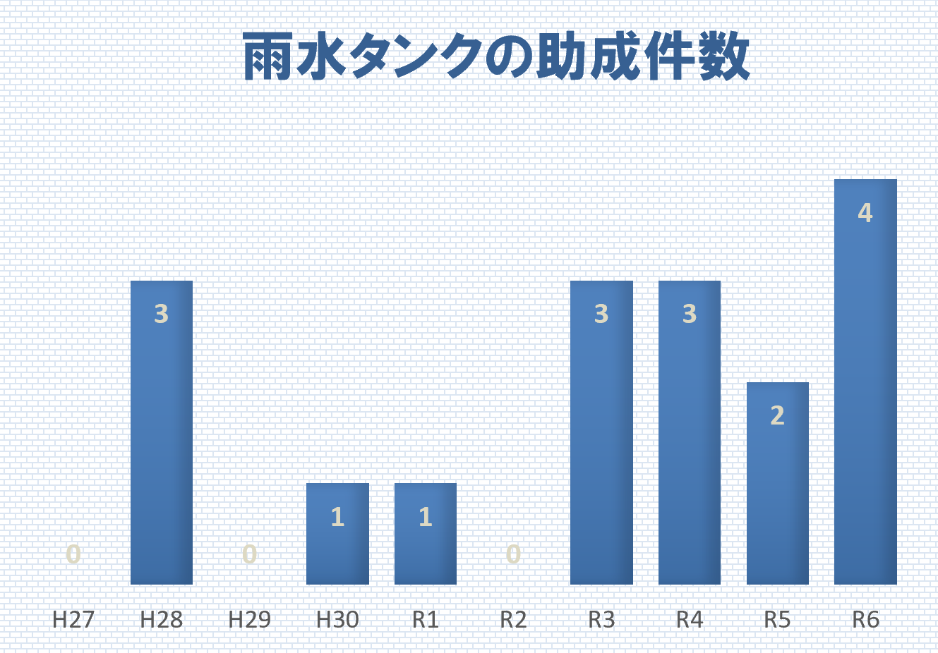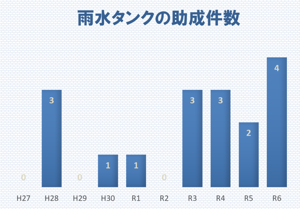 雨水タンクの助成実績は、平成28年度の助成開始以来、累計で約4,400L、すなわち4.4㎥にとどまっています。このため、雨水流出抑制効果には現実的な限界があります。