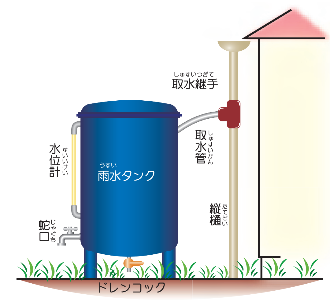 雨水タンクのイメージ(公益財団法人雨水貯留浸透技術協会発行「戸建住宅における雨水貯留浸透施設設置マニュアル」P37より)