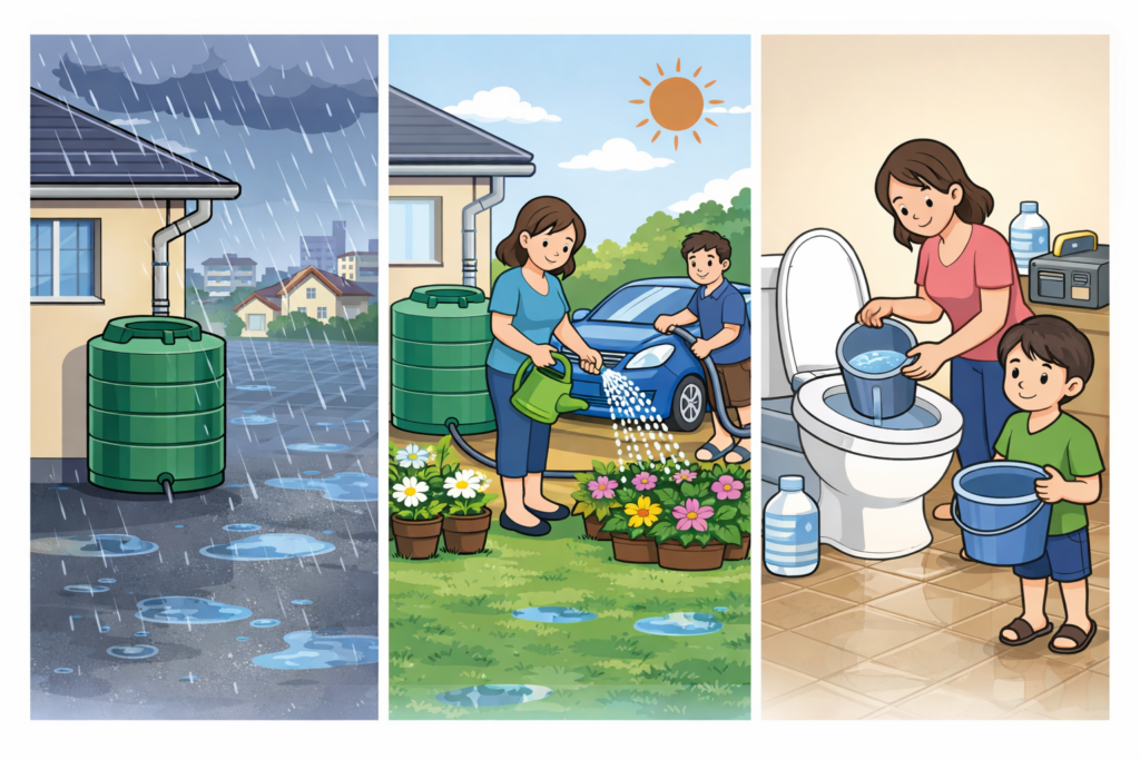 ② 溜まった雨水をガーデニングや洗車に使える(エコ)
